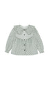 Nuevo modelo que mezcla dos tipos de tejidos para darle un toque a la prendacon cuello pala y acabado en volante para darle un toque más femenino. De nuestra Marca amiga Kiddo The Label.