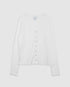 En en color blanco, botonadura delantera y lleva una luna Petite Siesta® bordada en el puño.