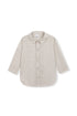 Boys' long-sleeved scoop-neck shirt in brown gingham. It features large, contrasting white buttons for a fun, fresh touch.