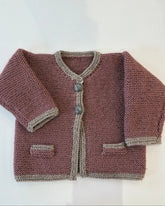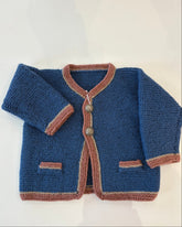 Chaqueta austriaca abierta de lana tejida a mano por costureras artesanas, con 2 botones metálicos originales.