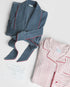 El pack ideal para elevar la rutina de descanso masculino. Incluye pijama camisero de rayas Burgundy en algodón 100% pima orgánico y bata Deep Blue de micropana con vivo Burgundy.