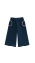 Pantalón de niña ancho pana gruesa azul pato con detalle de maxi bolsillo falso color ciruela. De nuestra marca amiga Kiddo.