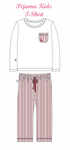 Camiseta en color blanco con bolsillo estampado de rayas y pantalón a juego con cintura elástica y lazo. El bolsillo lleva una luna Petite Siesta bordada a mano.